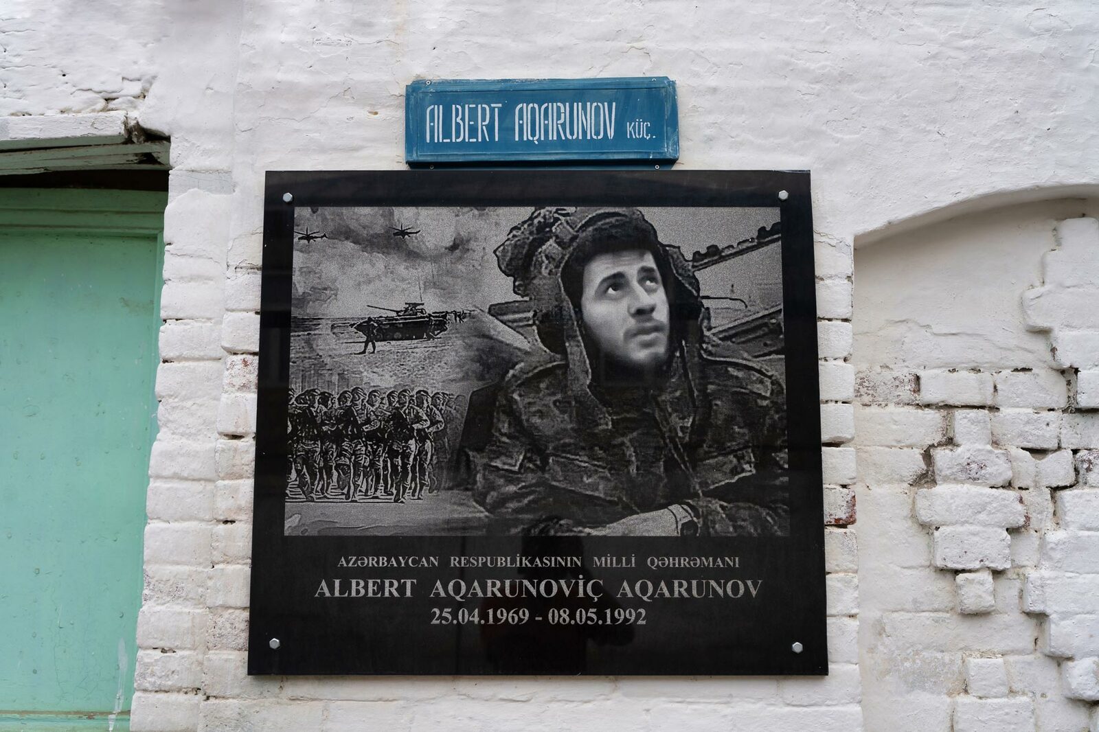 Born in Baku's Amirjan settlement, when the First Karabakh War broke out in 1991 Albert Agarunov enlisted as a volunteer in the Azerbaijani army. Serving in the 777th Special Battalion as a tank commander, he was able to destroy 9 tanks and 7 armoured personnel carriers in just a few months. However, on 8 May 1992 when the city of Shusha was captured, he was shot by a sniper having climbed out of his tank to pull aside the bodies of fallen comrades. He died on the battlefield. Albert Agarunov was posthumously designated a "National Hero of Azerbaijan" in 1992 for his courage and heroism in defending Azerbaijan's territorial integrity and civilian population. When Albert Agarunov was buried, the mullah and the rabbi prayed at the same time. He was buried in the Alley of Martyrs in Baku. Albert had every chance to leave Azerbaijan but he stayed and fought for his homeland. His heroic life therefore remains a symbol of the centuries-long Jewish-Muslim unity and brotherhood in Azerbaijan. Albert remained a hero and source of motivation for all of Azerbaijan during the Second Karabakh War in 2020, when Azerbaijan liberated its lands after 30 years of occupation.