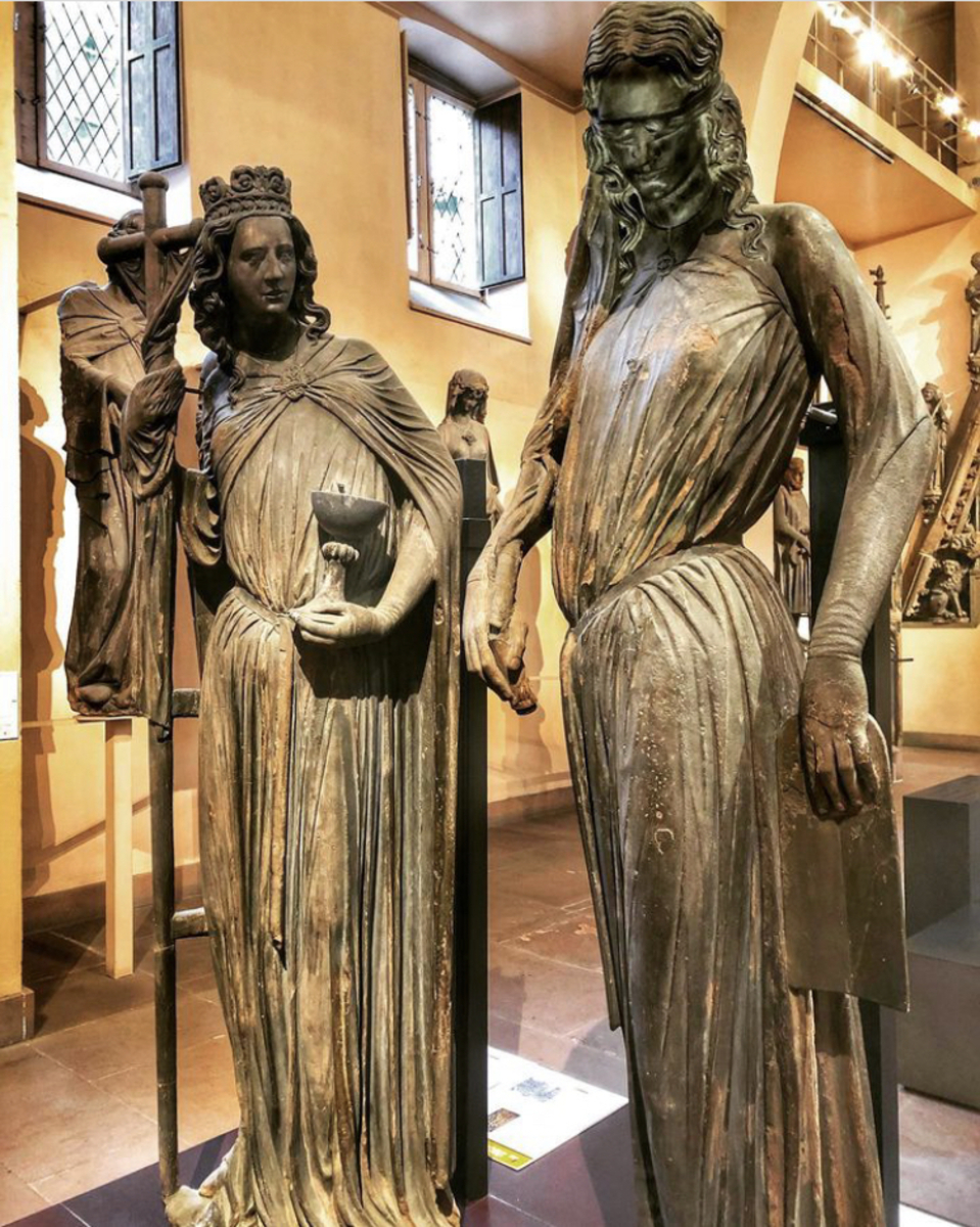 Look at Synagoga: young and beautiful like her neighbor, but her head is tilted, her eyes are blindfolded, symbolizing the spiritual blindness of the Jews. His spear is broken in several places, showing his frailty, and the Tablets of the Law that fall from his hands materialize the bygone era of the Old Testament.