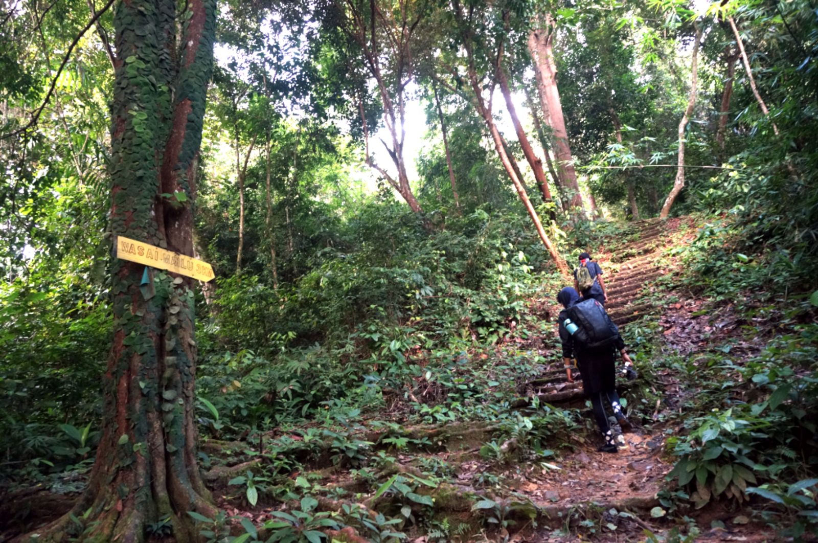 The trailhead of Bukit Batu Bujang Pahang begins from a parking lot. If you hadn’t walked the 3.5km from the jetty to the trailhead, a quick warm up session should help you limber up before the climb. Just before the climb, you’ll find a bamboo water trough that channels cool, clean water from the hill. For convenience, the MPK constructed concrete stairs up the foot of the hill to help you get started on the first leg.