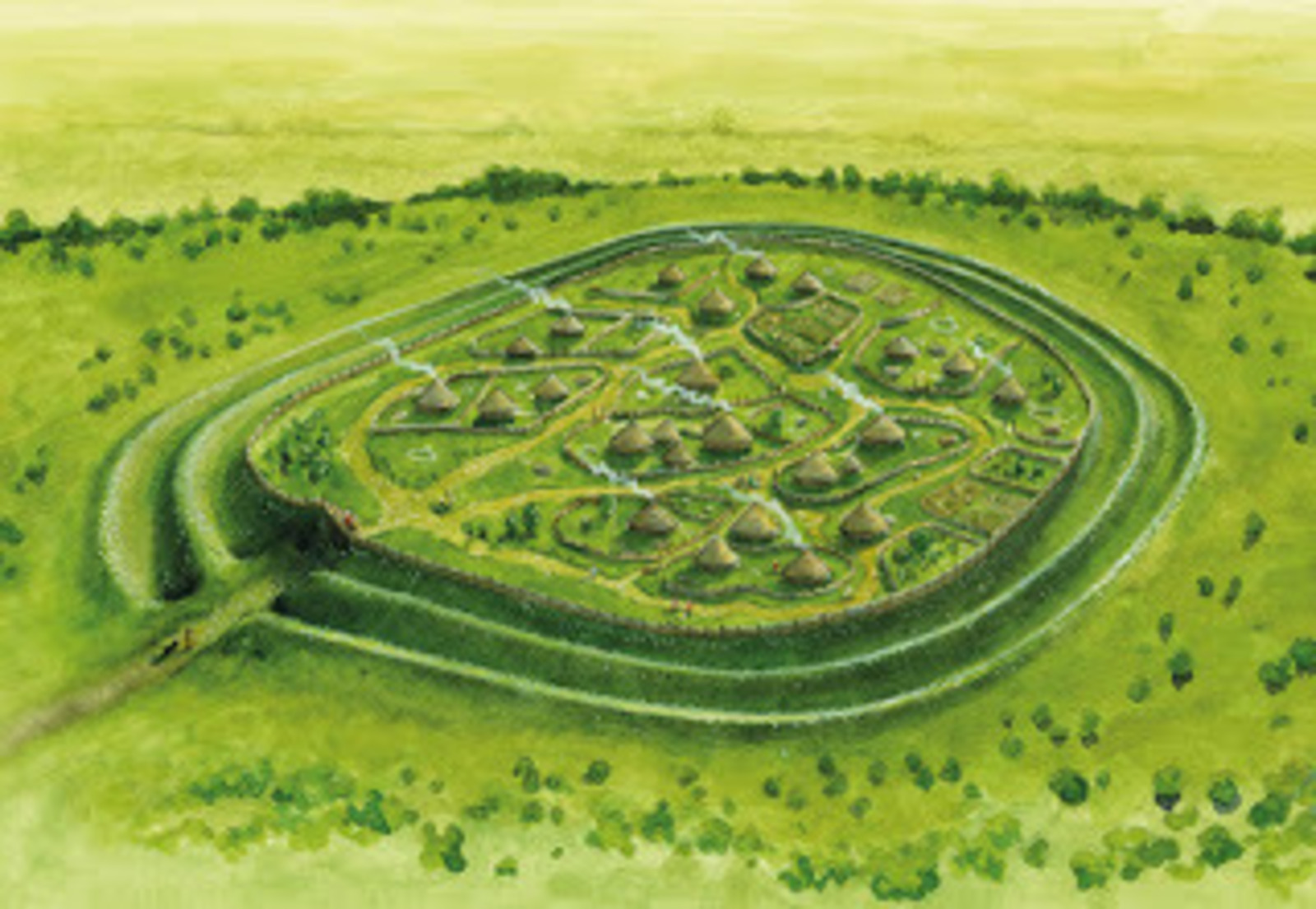 La colline est entourée par des bancs et des fossés de terrassement en terrasses et des peuplements d'arbres. Sur les côtés nord-ouest et sud, il y a 4 remparts, dont deux restent à l'est. Le sommet couvre 7,28 hectares (18,0 acres) et est entouré par la rive intérieure de 1,2 kilomètre de long. Le fort de la colline est dominé par Sigwells, un plateau rural riche en vestiges archéologiques.
