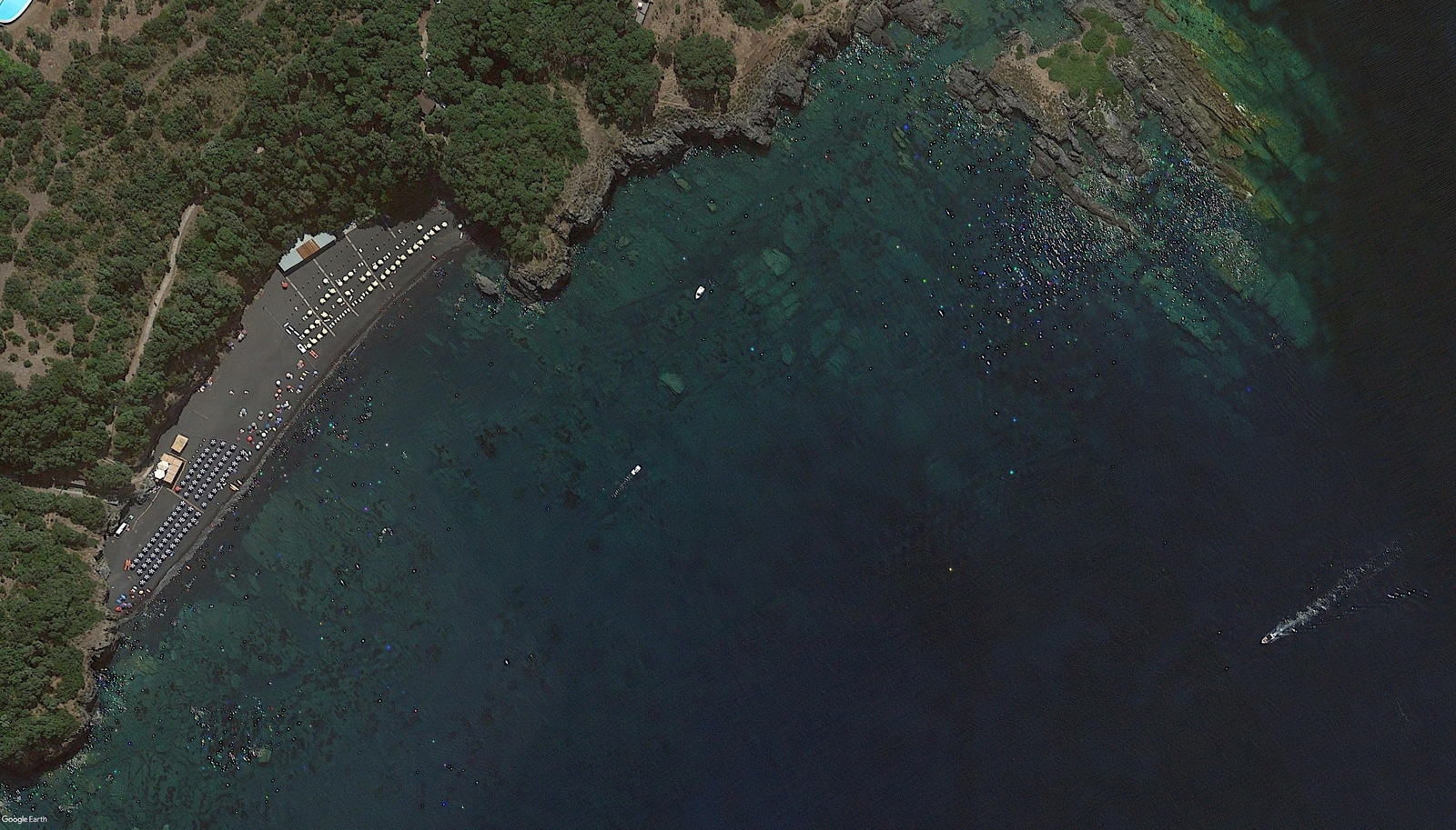 La spiaggia è avvolta da una fitta vegetazione e subito dopo, andando verso sud, è possibile raggiungere via mare prima "La grotta della Sciabella", che al suo interno ospita a sua volta una piccola spiaggetta e subito dopo "La grotta della tartaruga". Sono presenti piccole grotte anche nella zona nord, subito dopo la spiaggia, raggiungibili facilmente sempre via mare. Sulla grotta della Sciabella si narrano avvincenti leggende: la più celebre, narra che fosse utilizzata da una donna del posto, Isabella, per incontrarsi con i suoi amanti, la quale fu poi scoperta e assassinata dal marito, che la fece precipitare dal buco che si apre sul soffitto della cava.