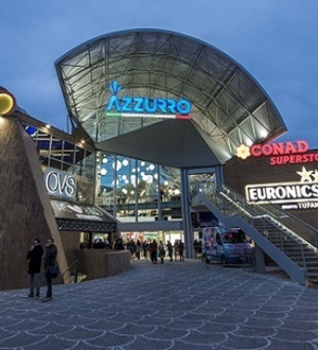 The Centro Commerciale Azzurro is located in via Marco Aurelio 189 (and via Cupa Nuova Cintia 41), at the exit of the ring road in Fuorigrotta a step away from the Federico II University of Monte Sant'Angelo and the Diego Armando Maradona Stadium, near schools and offices and can be easily reached by car or on foot. It officially opens its doors to the public on February 24, 2016, anticipated by an inauguration ceremony the previous day. Azzurro Life&Shopping, this is the full name of the structure, was made possible by the President of Conad, Claudio Alibrandi, owner of the building, whose superstore occupies a large part of the ground floor. Azzurro and, inside, in the 3 floors, there are 19 shops and the whole structure is part of a context long left to decay, replacing the old San Paolo Shopping Center. Within the structure there are numerous brands. Among others, the maxistore (1,200 square meters of surface) Euronics-Tufano group, PittaRosso, H&M, OVS. Parking is also very large, with its 4 ground floors, naturally equipped with elevators. For the redevelopment of Azzurro, the environmental impact was taken into account, with the installation of a photovoltaic system, LED lighting, refrigerated power plants and high efficiency refrigerated benches.