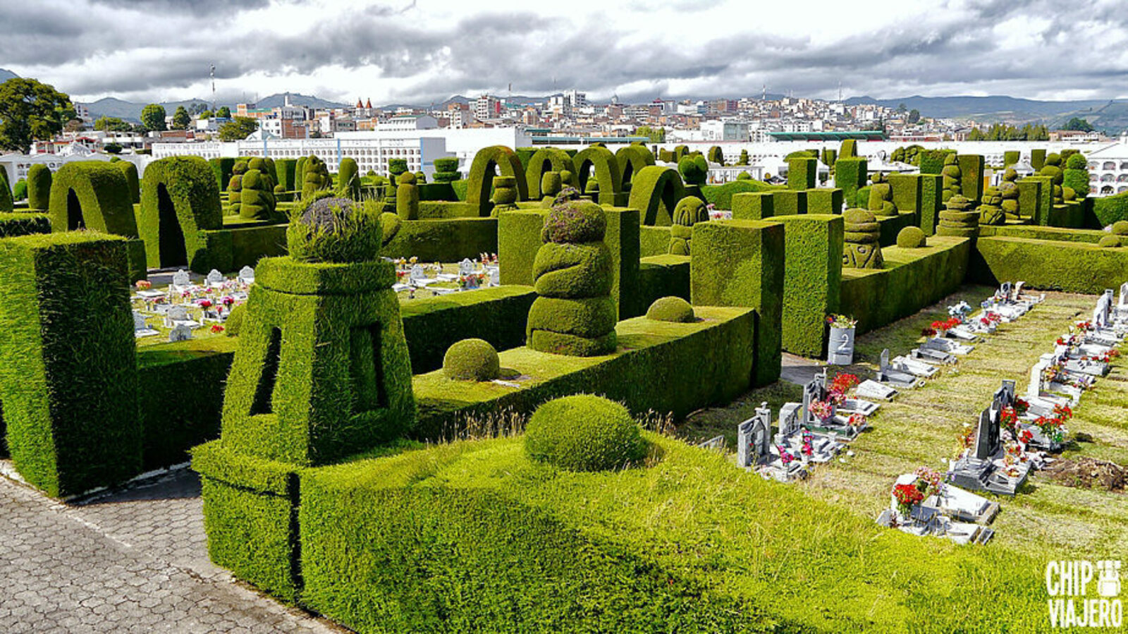 The characteristic that makes this cemetery unique are its impressive figures carved in cypress; Augustinian figures, pre-Columbian, Ecuadorian fauna, semicircular arches, pylons and giant masks.
