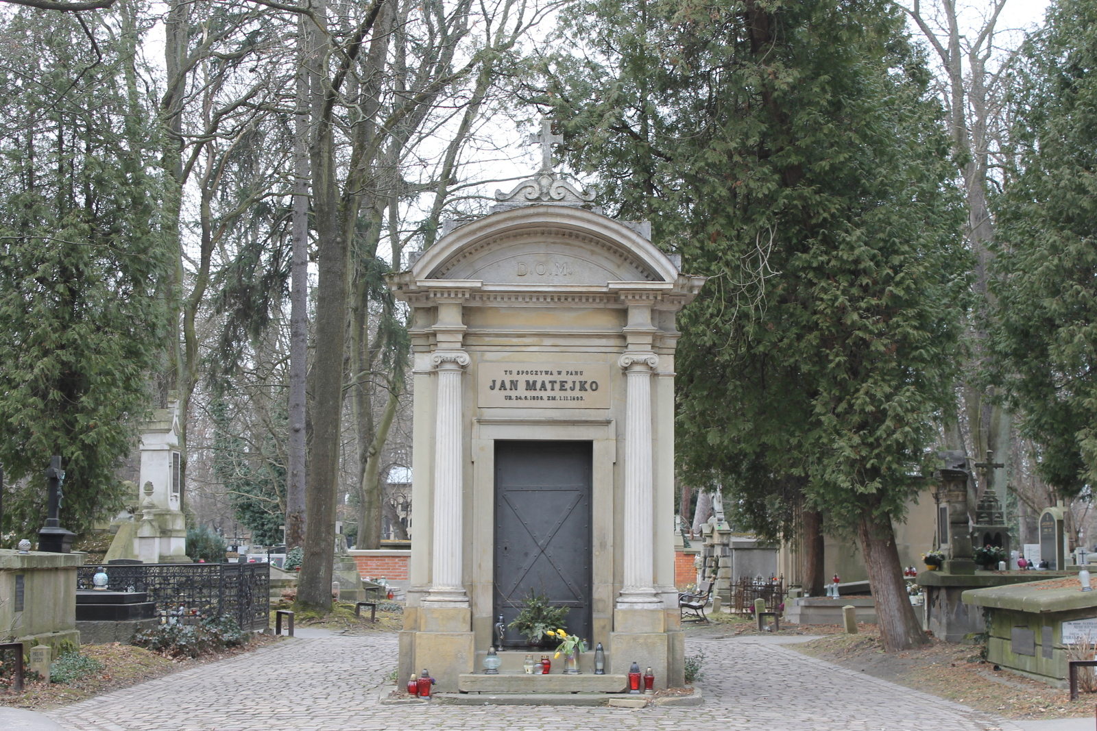 W centralnym punkcie drogi widzisz grobowiec Jana Matejki - mistrza pędzla, wielkiego - mimo niskiego wzrostu - polskiego malarza, przez niektórych uznawanego za jednego z wieszczów narodowych. Był najznamienitszym reprezentantem polskiego historyzmu, a swoimi olbrzymimi obrazami kształtował i rozbudzał patriotyczne uczucia w sercach polaków stojących na progu odzyskania niepodległości. Uświadamiał rodakom siłę dziedzictwa narodowego, a jego przedstawienia polskich królów i bohaterów towarzyszom nam po dzień dzisiejszy. Co ciekawe, Matejko należał do niewielkiej grupy artystów, którzy docenieni zostali jeszcze za swojego życia - w 1878 roku prezydent Krakowa Mikołaj Zyblikiewicz wręczył mu berło, mające być symbolem jego duchowej władzy nad Polakami.