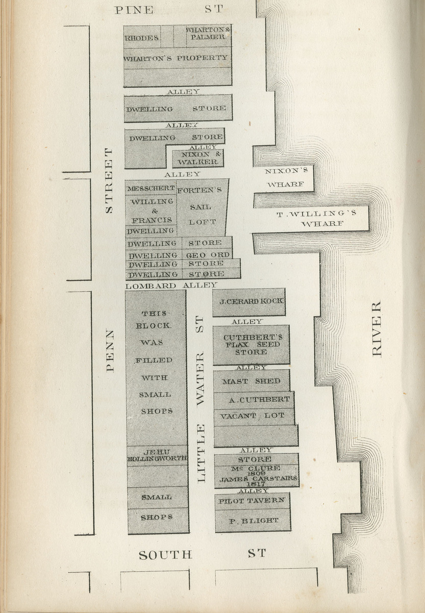 Document: Map from Abraham Ritter, "Philadelphia and Her Merchants" (Philadelphia, 1860). Shows the site of Forten’s sail loft business on the Delaware River. CLICK HERE to view record on WolfPAC, the Library Company’s collections catalog.