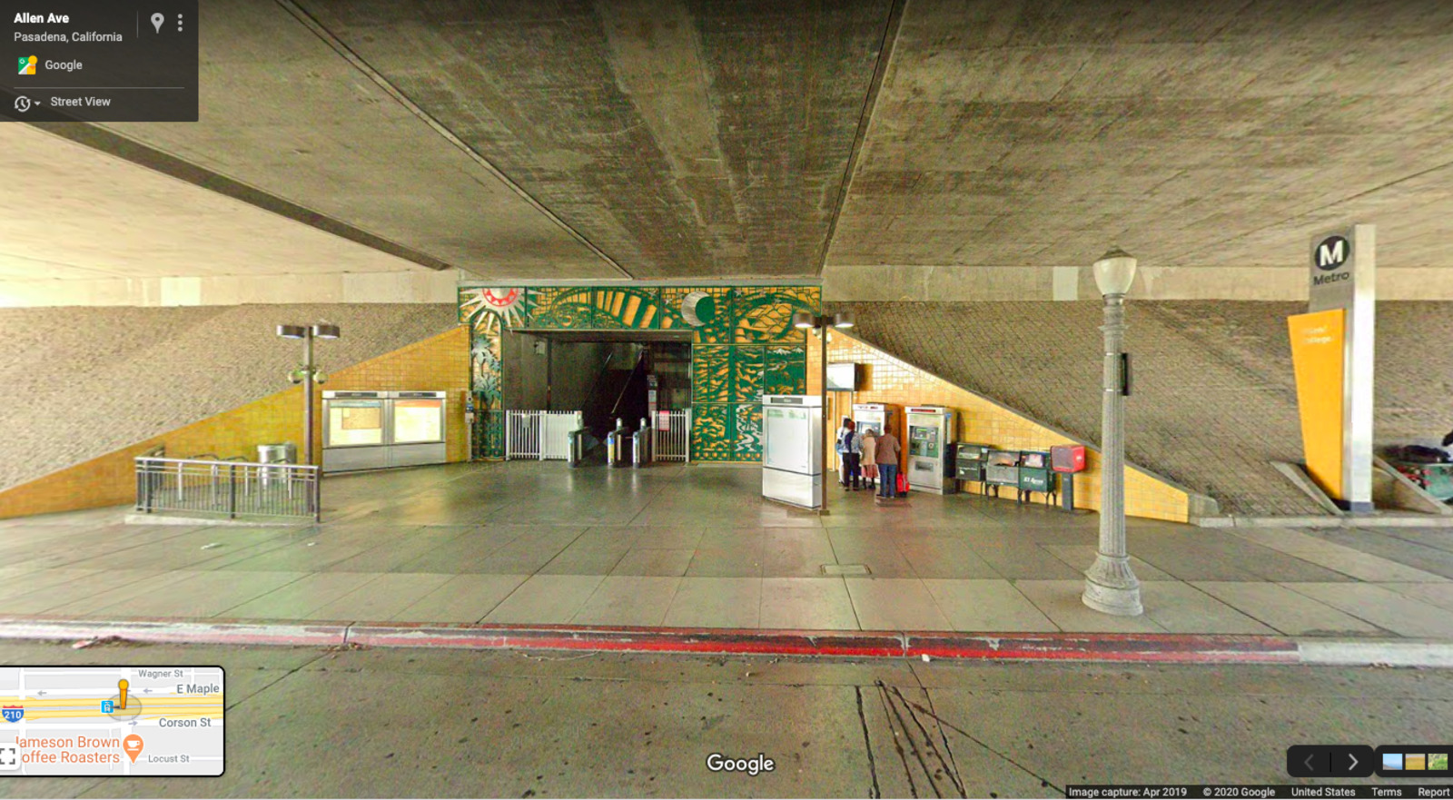 This is the Metro L Line (formerly Gold) light rail station for Allen St. The entrance/exit is under the 210 freeway overpass.