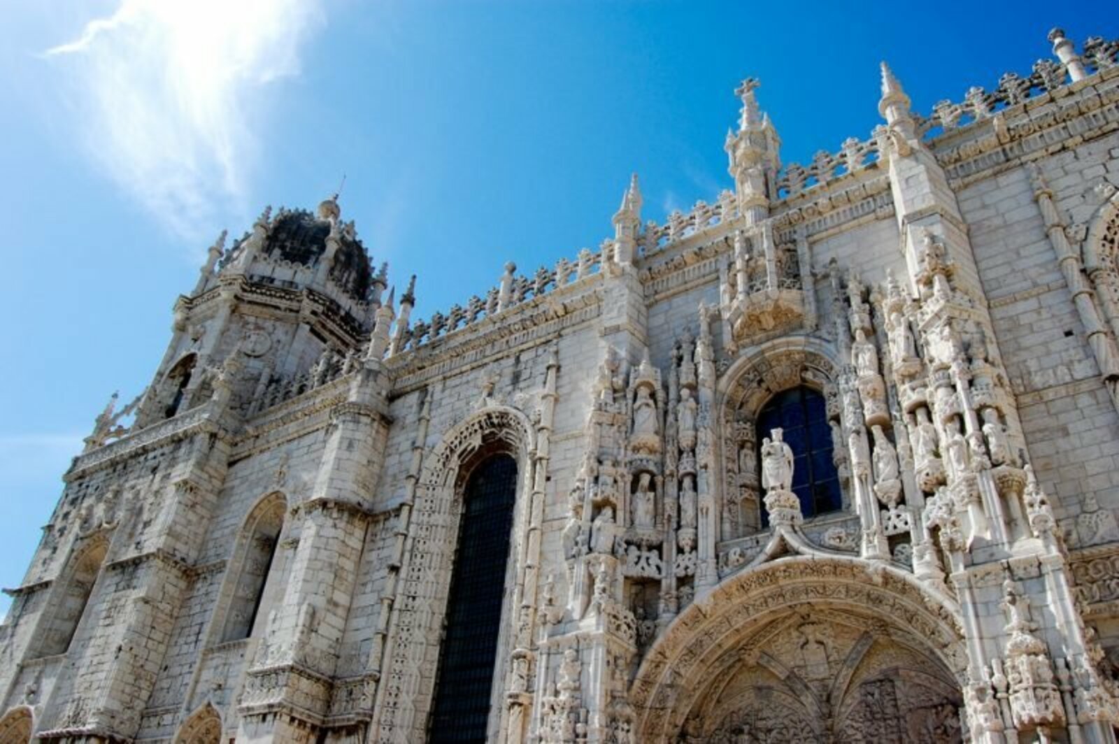 L'entrée principale du Monastère se fait par la Porte Sud, magnifique Porte Occidental, conçu par Joao De Castilho. Vous trouverez là, le pilier central (trumeau), orné d'une statut de Henri Le Navigateur. D'autres piliers à l'intérieur du bâtiment forment des voûtes sur trois nefs. Sa nef principale compte six immenses colonnes parfaitement taillées. L'église du Monastère possède une architecture unique. Lorsque vous entrez, prenez ensuite la porte ouest pour admirer le cloître, situé sur 2 étages et de forme carrée de 55m de côté. A l'étage vous trouverez la tombe de Fernando Pessoa ainsi qu'une salle dédiée à l'évolution du Monastère.