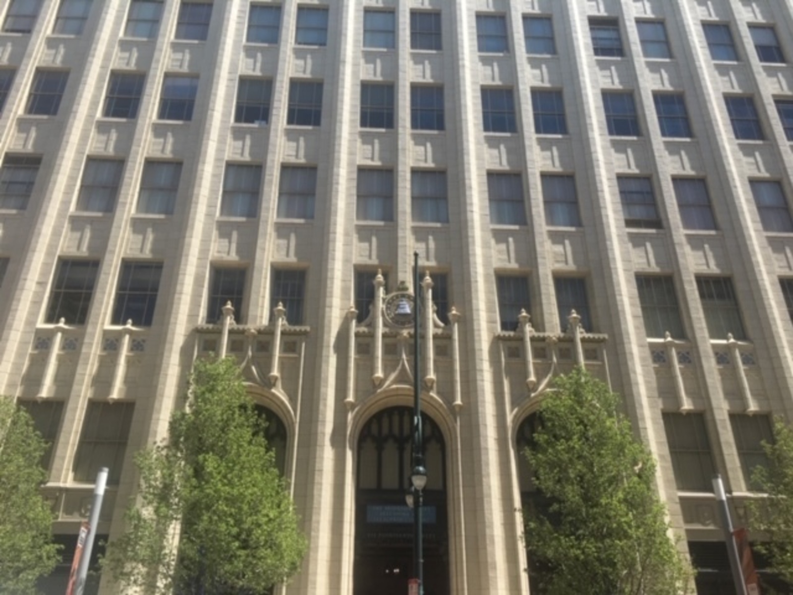 As you come by the Mountain States Telephone and Telegraph Building, step into the outdoor foyer of this beautiful building. The reason for this stop is the murals you see on the walls, celebrating the construction workers who built the communication system back in the day. The artist once again is Allen Tupper True, the same fellow whose work we saw as Prospector in Civic Center Park. The reason I like his style is the simple, elegant detail of the works, combined with the contrasting color schemes in each image. They match this Gothic building, completed just before the stock market crash of 1929, beautifully.