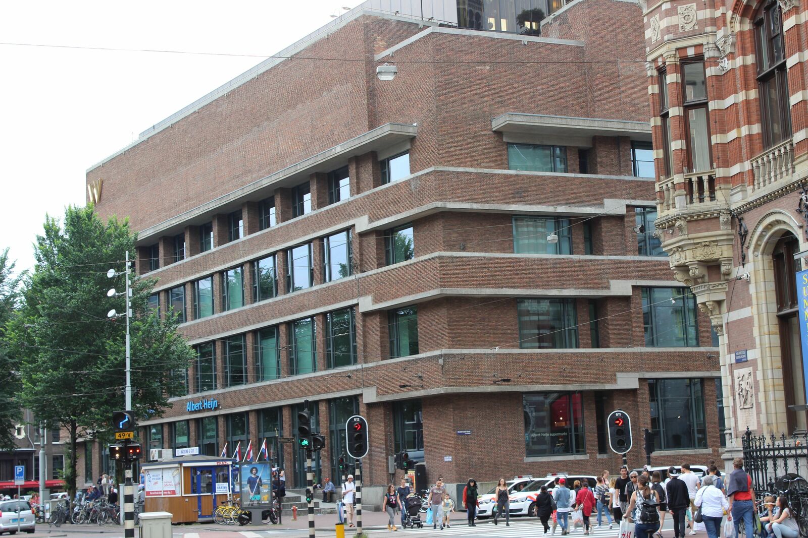 Dit grote gebouw, nu een Albert Heijn-supermarkt, was het telefoonbedrijf waar tijdens de oorlog alle internationale telefoonverbindingen werden onderhouden. Op de muur hingen in 1941 posters van de V-campagne. De geallieerden waren begonnen met het gebruik van de letter 'V´ van Victory. De Duitsers gingen daarop de ´V´ voor hun eigen boodschap gebruiken met de leus ´V=Victorie, want Duitschland wint op alle fronten´. De Amsterdammers bewerkten die pro-Duitse posters met verf en maakten van de V de V van Verliest of Verzuipt. Of de V werd veranderd in een W van Wilhelmina, de naam van de Nederlandse koningin.