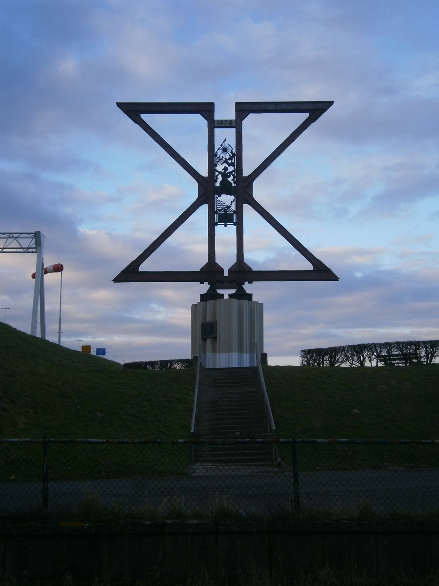 Net voor de verkeersbrug ziet u rechts op de dijk een monument ter herinnering aan de oude verkeersbrug over het Hollandsch Diep. Die brug is tevergeefs gebombardeerd door Nederlandse bommenwerpers op 13 mei 1940. In november 1944 hebben de Duitsers, na terugtocht van het merendeel van hun troepen in West-Brabant, de verkeersbrug en spoorbrug opgeblazen. De oude verkeersbrug is in 1945 herbouwd en in 1978 vervangen door de huidige brug.