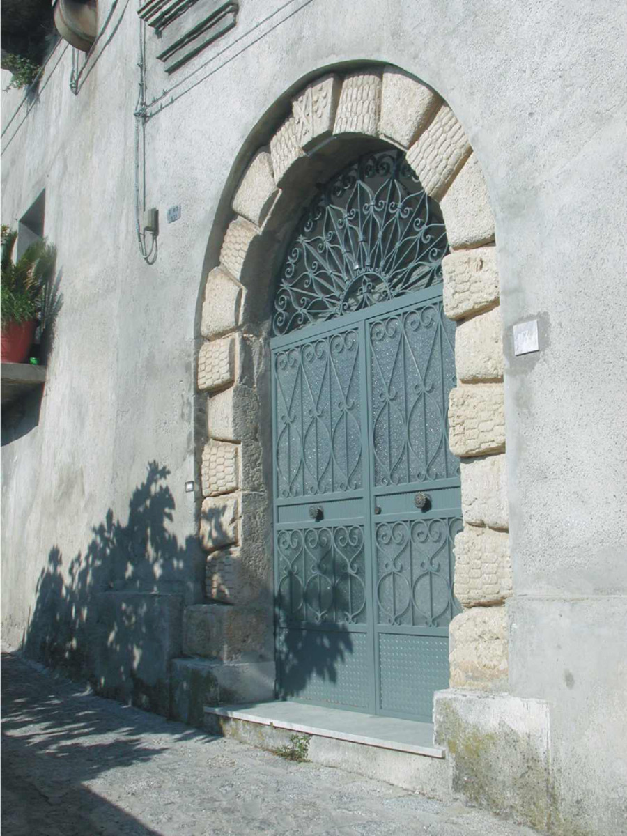 Palazzo Correale - Medici, oggi Antico. Il portale in pietra con bugne , è sormontato da uno stemma diviso in due parti :la parte sinistra apparteneva alla Famiglia Correale ,la parte destra alla famiglia Medici. Lo stemma ricorda che le famiglie si sono unificate in seguito al matrimonio tra un Correale e una Medici.