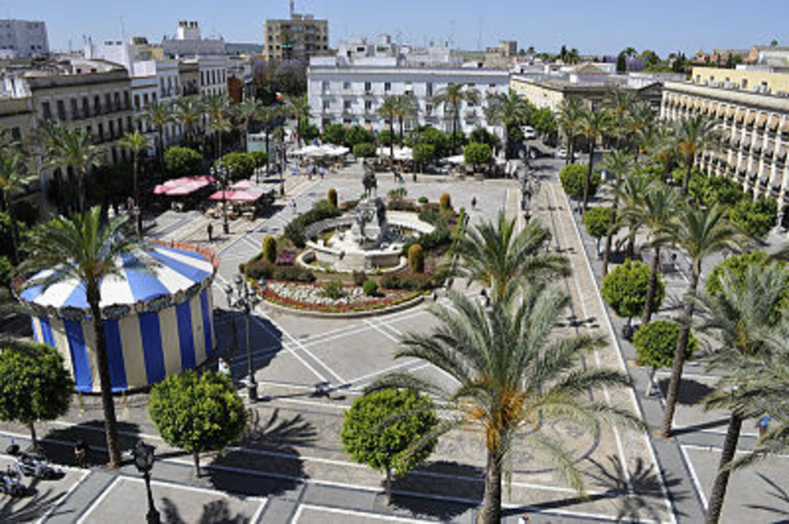In the center of the square, we see the beautiful fountain, which commemorates the conduction of the waters to Jerez from the Tempul spring, on July 16, 1869. In the center of the fountain, the work of the Valencian sculptor Benlliure, represents the Jerez-born politician and military Miguel Primo de Rivera, who was head of government in Spain.