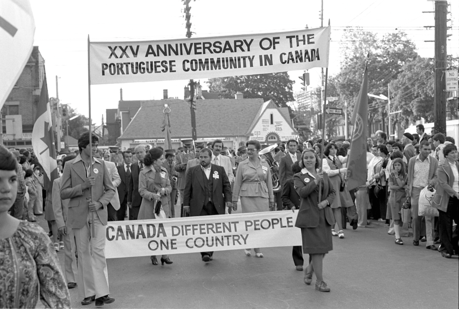 The first celebrations in Toronto were held in 1966 and were organized by the Catholic priest Alberto Cunha at St. Mary's Catholic Church, who gathered several thousand Portuguese immigrants at the CNE coliseum, today known as Ricoh. In subsequent years, Trinity-Bellwoods became the central site for the festival’s events. At first, the Portugal Day festivities were organized by a small group of community elites with the help of the Portuguese Consul-General. Dignitaries from Portugal and Canada spoke at these events, which included soccer tournaments, Catholic services, and a parade of various community associations. After the 1974 revolution in Portugal there was a fundamental shift in the way the celebrations were organized. Reflecting the democratization process unfolding in the homeland, Portugal Day festivities in Toronto started being organized from the “bottom-up”; no longer just the business of a small privileged group but involving a larger number of community stakeholders. At the same time, the new government in Lisbon renewed efforts to reach out to the expatriate communities after the fall of its colonial empire and renamed the national holiday “Day of Portugal, Camões and the Portuguese Communities” – no longer the “Portuguese Race”.