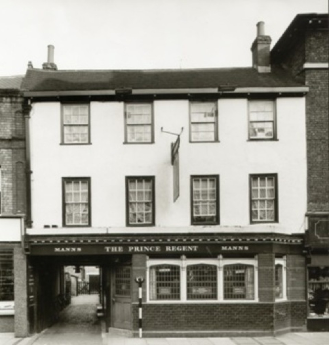 It is probable that the Prince Regent public house dates as far back as 1676 when it was called 'the Portcullis'. The present building has the appearance of being slightly younger, dating from c. 1725 but subsequently rendered. In the 19th century it was called the Regent Inn and was a coaching inn for the Rover Coach which plied between Chobham and London.