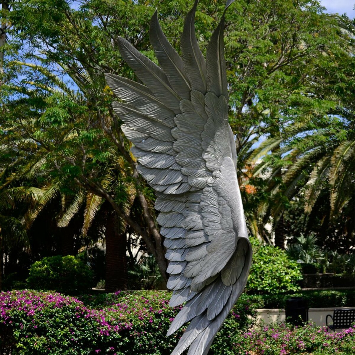 Wow, take a look at this huge wing! What do you think it is made out of? The clue is that it is not made of bronze like the other sculptures we have seen. It is made of stainless steel, which is also what skyscrapers are made from in New York City and other large cities. Did you know that the tallest steel tower in the world is called the Skytree, in Tokyo, Japan. Steel is a very strong and lightweight material thus it can be built very high.