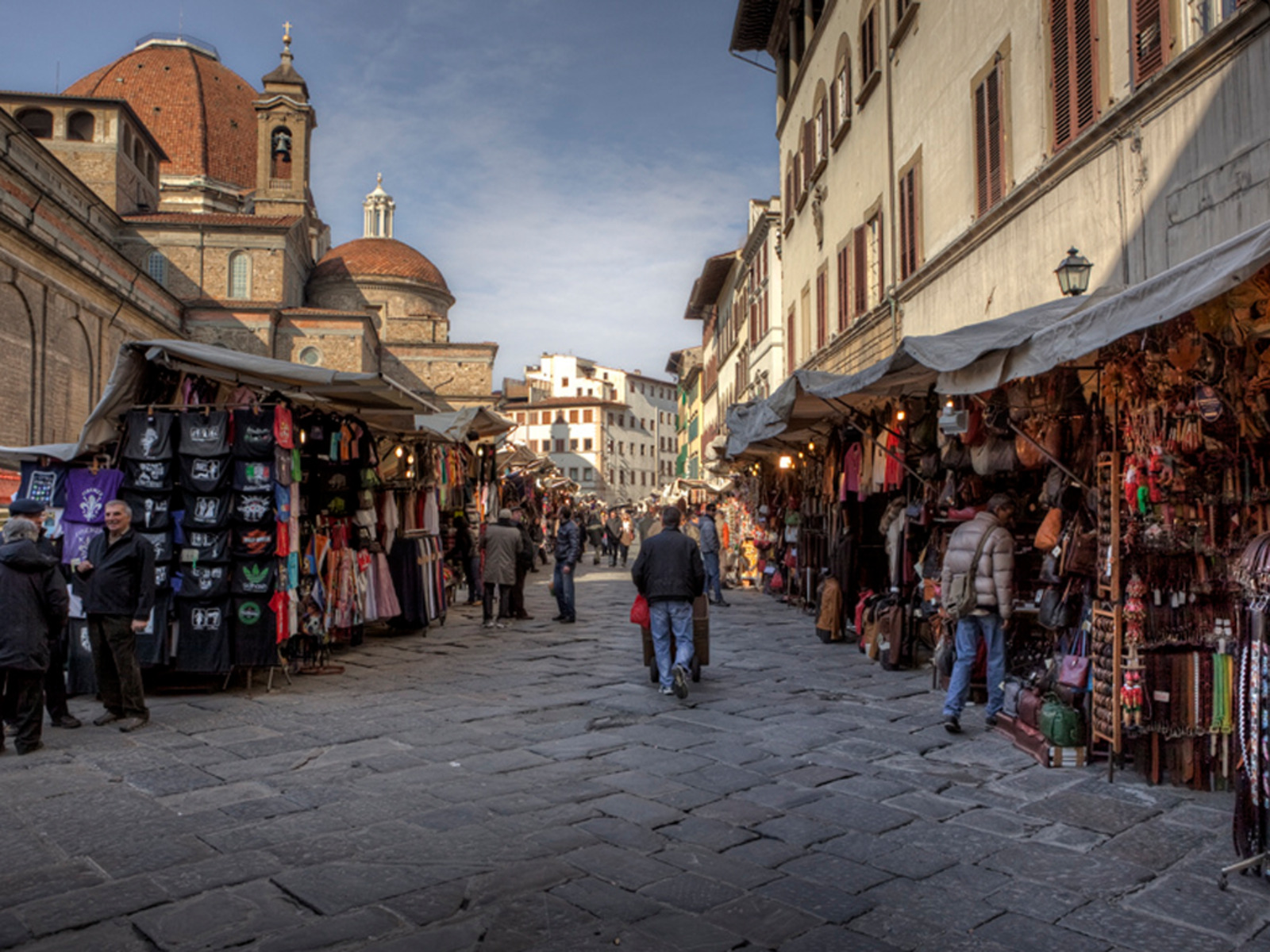 The outside stalls of the San Lorenzo market sell leather, clothing and souvenirs, while the inside Mercato Centrale is a fresh local food market.
