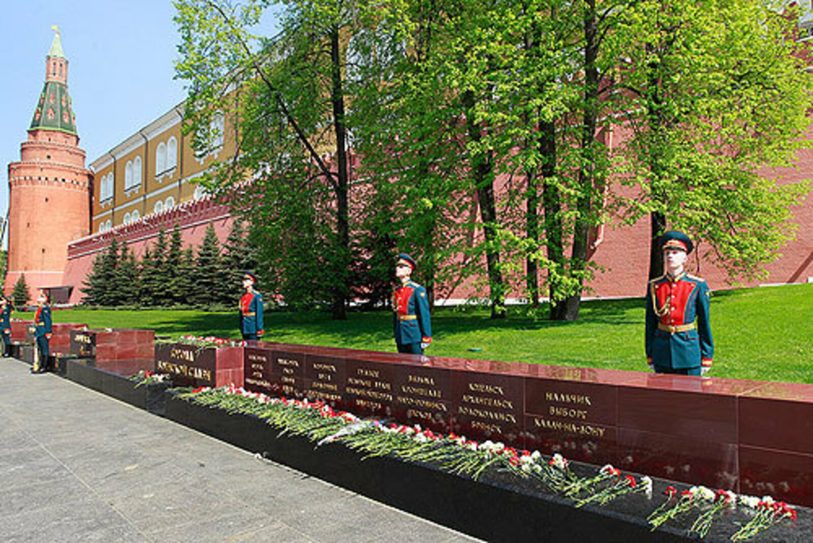苏联英雄城市纪念碑与无名战士纪念碑同时揭牌。