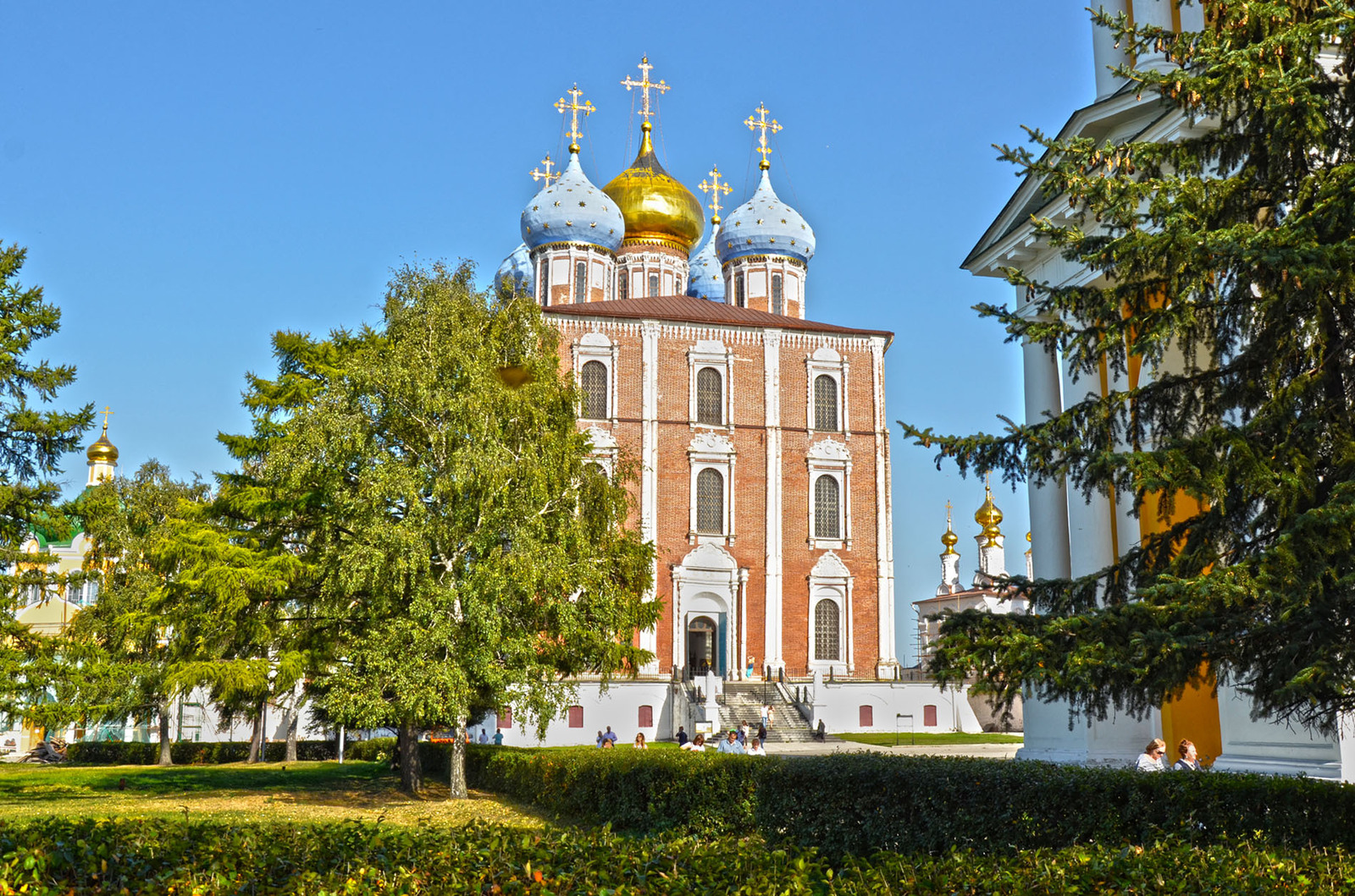 It is famous for its peculiar grandeur and beauty. By its size, it surpasses almost all the buildings of Ancient Rus. It’s is the highest and the most extensive of all old Russian cathedrals. This is a colossal structure (the cathedral area is 1600 square meters, the height is 72 meters), larger than St. Basil's Cathedral in Moscow and higher 13 meters higher than the Dormition Cathedral of the Moscow Kremlin. The cathedral was erected in 1699 by Ryazan architect Yakov Bukhvostov. The cathedral is designed in Naryshkin Baroque style. Intricate carvings on white stone, which decorated the windows and other elements of the cathedral, had no analogues in the XVII century. The interior is of equal beauty. It includes a 27-meter iconostasis - one of the highest in Russia. 155 icons are arranged in 7 tiers in a wooden carved frame, being a real masterpiece of Russian art.
