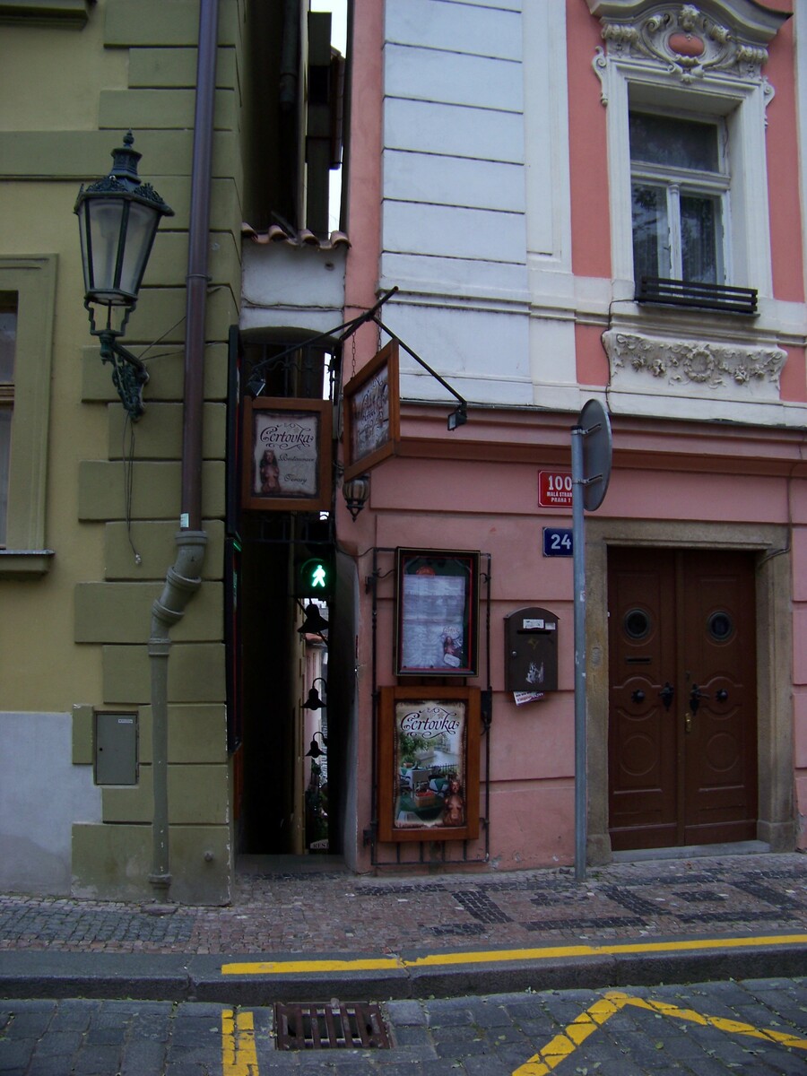 En effet, depuis quelques temps, la rue Vinarna a été aménagée de deux feux de circulation permettant de signaler lorsque la rue est occupée ou à l’inverse libre. Étonnant non ? Pas tant que ça, à vrai dire car comme l’explique le propriétaire d’un restaurant voisin “une fois, une touriste allemande, d’une certaine corpulence, s’est retrouvée coincée quelques heures sans qu’on puisse la sortir de là sans l’aide des pompiers”.