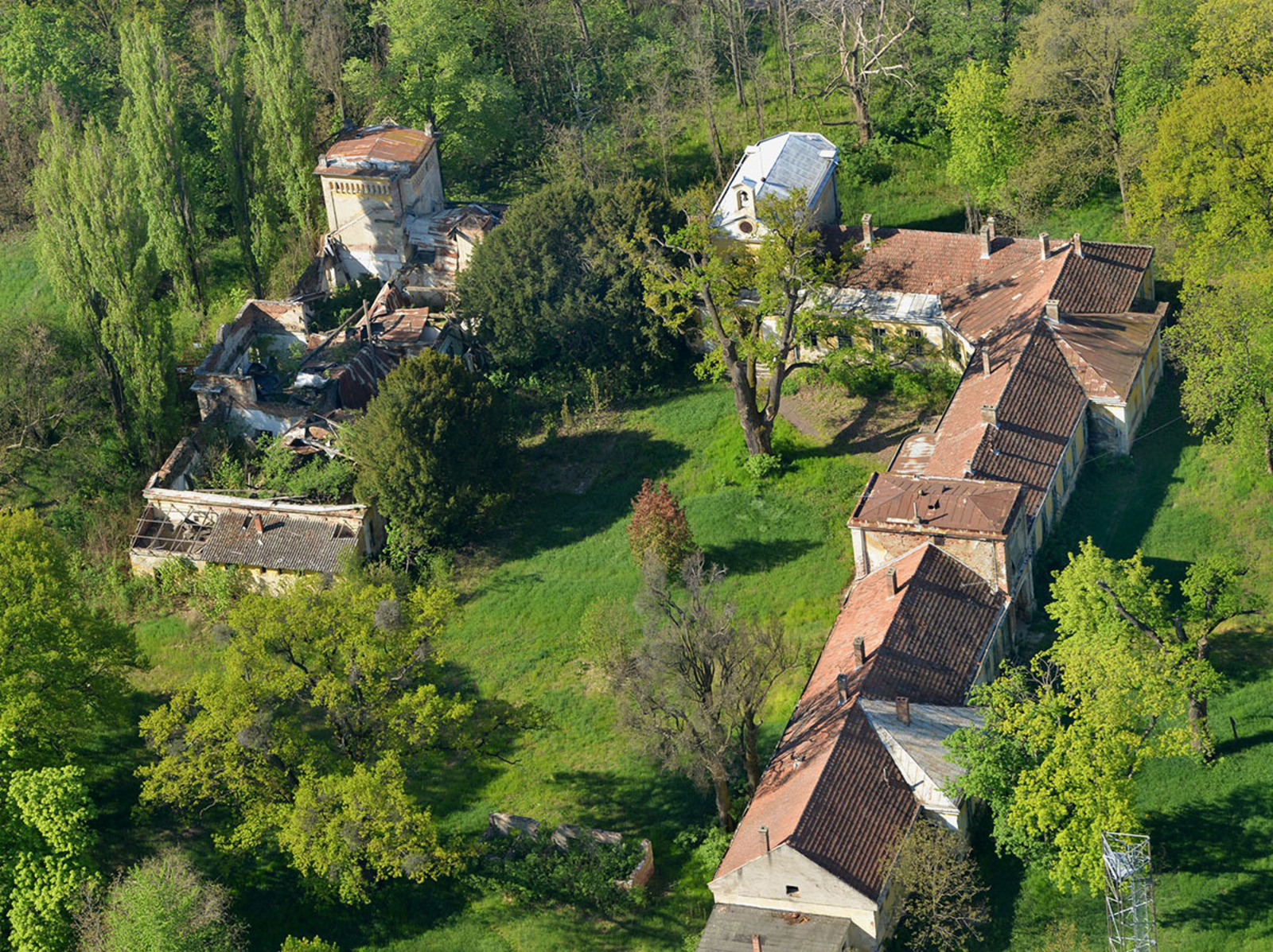A kastély szabálytalan 'U' alaprajzú, nagyrészt egyszintes, cseréptetős, romantikus stílusú a nyugati szárnyának középtengelyében kápolnával, amely a katolikus egyház tulajdona volt. 2003-ban A Leonardo CAD Bt. megvásárolta a kápolnát és a hozzátartozó épületrészt, majd felújította. A kápolna épen maradt eredeti festése és berendezése a korabeli szakrális épületek szép példája, bár színei kissé megfakultak. A berendezési tárgyai ép állapotúak. A kápolna előcsarnokához vezető folyosók elhanyagolt állapotban vannak. Ezenkívül a kastélyhoz tartozik még a pálmaház és egy hatalmas, a kastélyt körülvevő angol kert is.