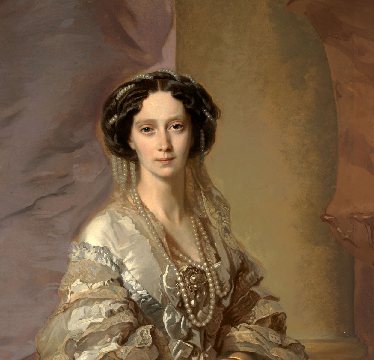 В экспозиции рассказывается о развитии женского образования в России, о значимых реформах, проведенных Императрицей Марией Александровной в этой области. Большое внимание уделено императорской семье – от династических связей до воспитания наследников, императорским «парадным резиденциям», в которых она проживала и способствовала их благоукрашению – Царское Село, Петергоф, Аничков и Зимний дворцы, крымское имение Ливадия и подмосковное имение Ильинское-Усово.