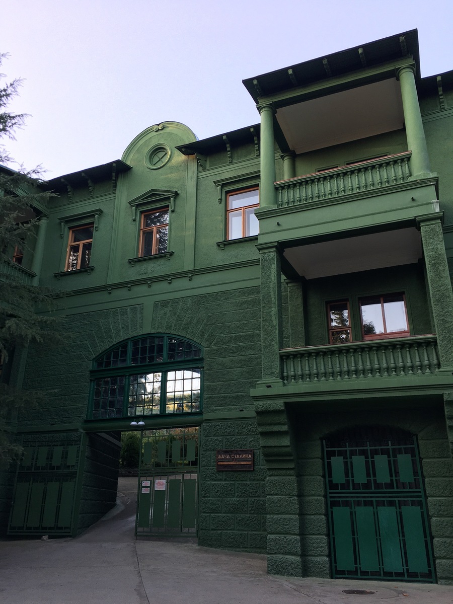 Это пристанище в Зеленой Роще - увлекательное место, построенное специально для размещения невысокого, замкнутого и параноидального человека. Экскурсии проводятся на русском языке, но некоторые из патриотичных гидов немного говорят по-английски. Вы увидите личные покои Сталина (с оригинальной мебелью), кинотеатр, где он проверял каждый фильм перед публичным выпуском, и его бильярдную, в которой он играл только с теми, кого мог обыграть, или с теми, кто был достаточно хитрым, чтобы поддаться. Сталинские портреты на стенах были добавлены уже после его смерти. Все остальные картины являются репродукциями, так как Сталин считал, что произведения искусства принадлежат народу и поэтому должны висеть в музее. Глубина воды в бассейне (всего 1,5 м), высота ступеней и большая часть мебели были специально спроектированы под маленький рост Сталина (165 см).