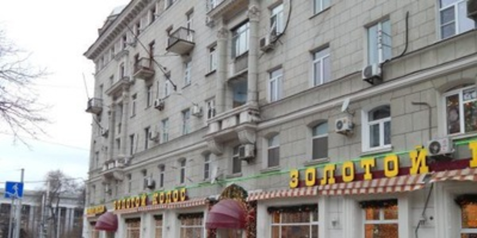 Здание построено в 1952 году по проекту Г. А. Петрова и Л. Л. Эберга. На первом этаже дома находится знаменитая ростовская кондитерская "Золотой колос", открытая 22 декабря 1992 года в крыле дома, которое расположено по Большой Садовой и именно эта часть имеет 6 этажей. Крыло дома, вытянутое вдоль Буденновского проспекта, имеет 7 этажей. Угловая башня здания, соединявшая эти крылья, - восьмиэтажная. Еще выше - декоративная башенка. Архитектурный облик здания формируют колонны, объединяющие 3-й и 4-й этажи по главной улице, и 4-й и 5-й по Буденновскому проспекту. В этом доме в коммунальной квартире № 20 жили известные композиторы С. А. Заславский в 1952-54 годах и И. К. Шапошников в 1952-53 годах. Этот дом с башней и здание ЦУМа образуют единый ансамбль "Ворота города", ведь именно с этого перекрестка начинается парадная часть улицы Большой Садовой.