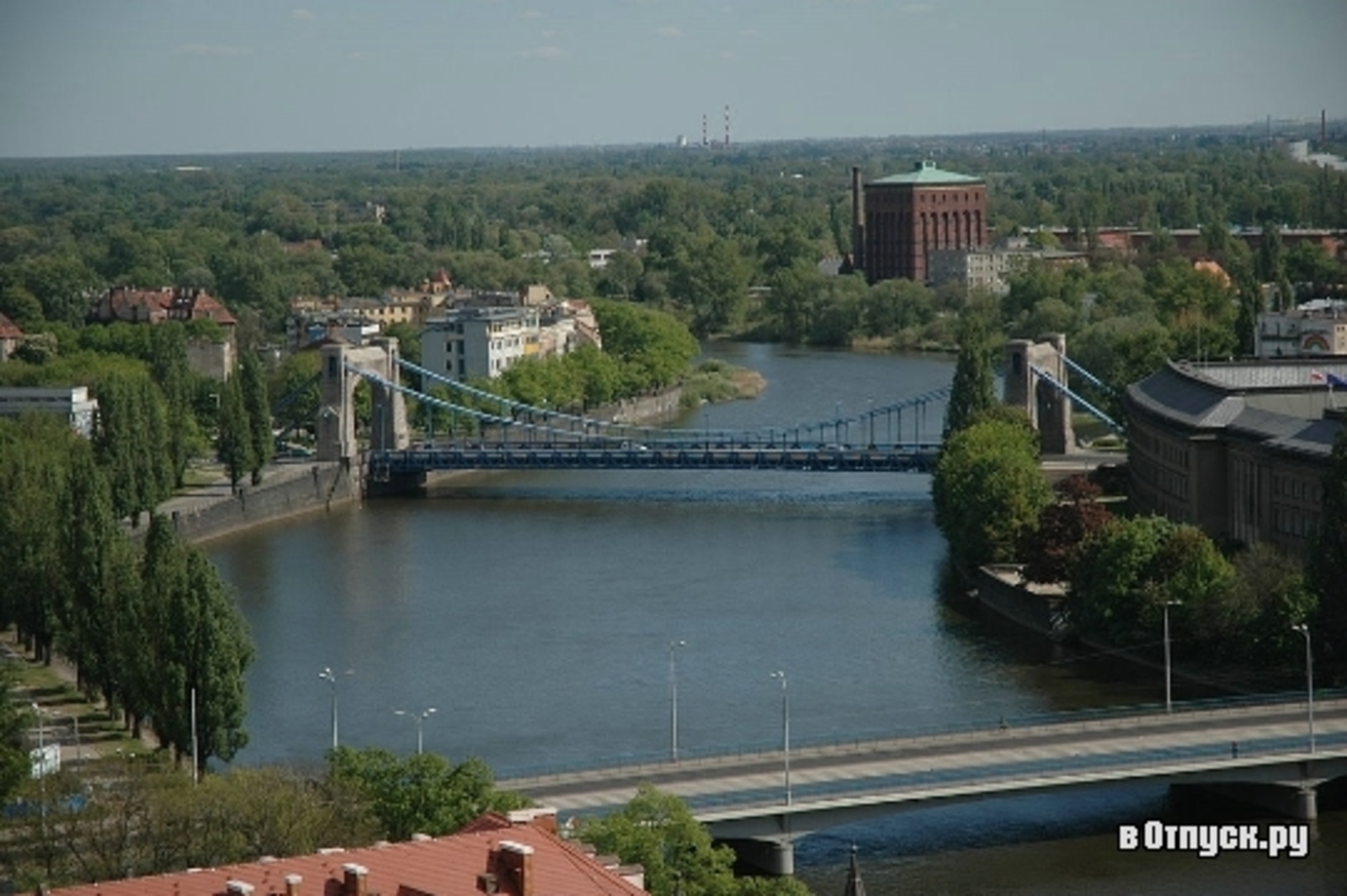 Грюнвальдский мост – подвесной мост во Вроцлаве через реку Одер. Грюнвальдский мост является одним из самых длинных мостов в Польше: 112 метров в длину,18 метров в ширину и весом 2,3 тонны. Построен из стали, кирпича и гранита.