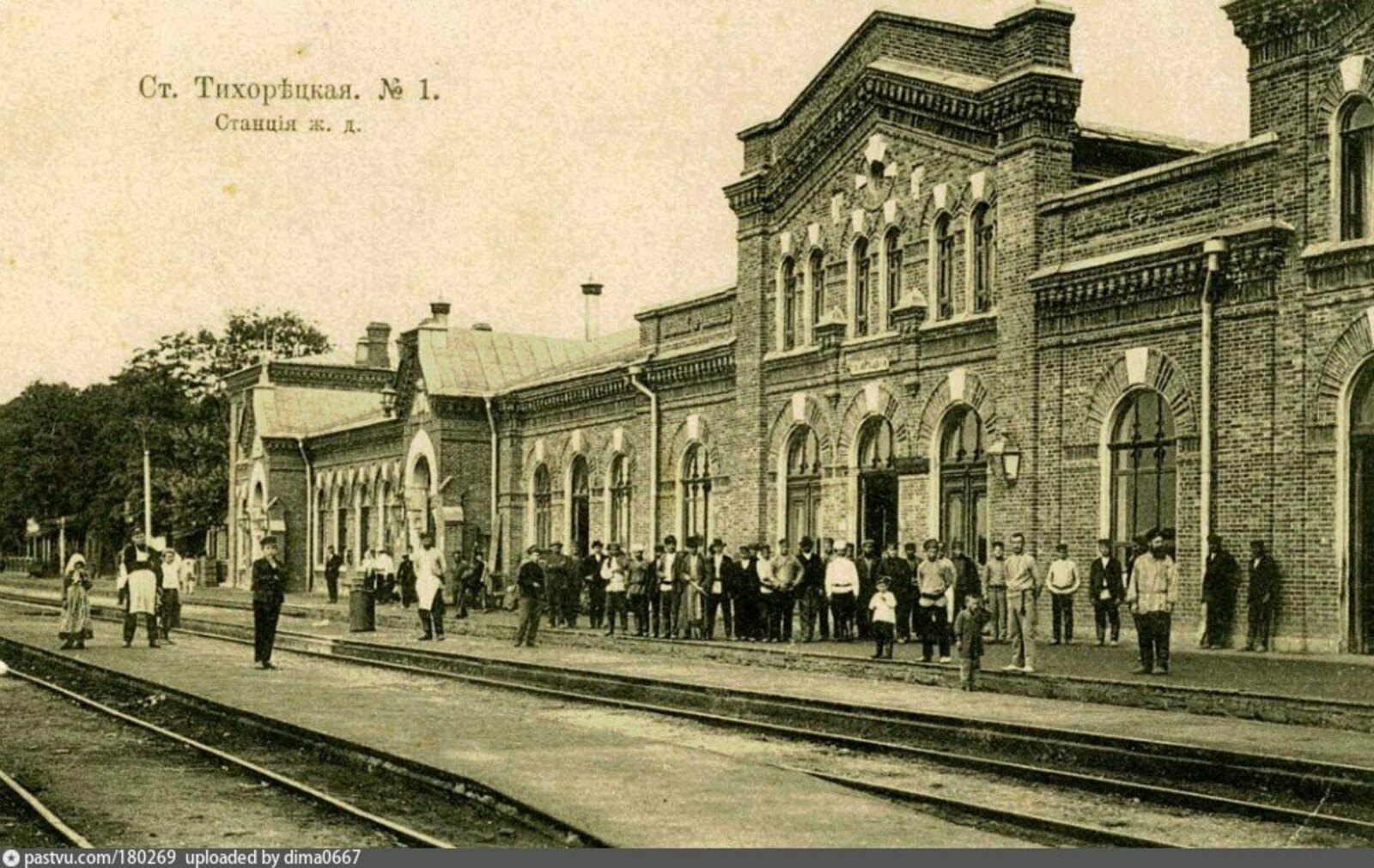 Первый небольшой деревянный вокзал на станции был построен в 1882 году. Уже в 1886 году на Тихорецкой было построено кирпичное двухэтажное здание вокзала, которое стало свидетелем многих событий, в том числе и Великой отечественной войны. Узловая станция Тихорецкая помнит стихийные выступления рабочих паровозоремонтных мастерских, митинги, забастовки и восстания 1902, 1905 годов. В 1918-м на вокзале находился штаб революционных войск Северного Кавказа. Во время гражданской войны на станции располагалась ставка генерала Деникина.